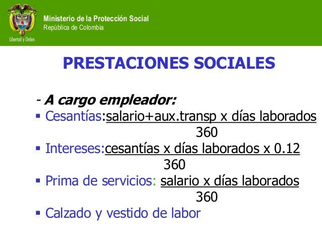 ü Intereses sobre cesantías: (Cesantías * Días trabajados * 0,12)/360